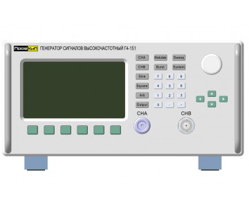 Генератор сигналов высокочастотный ПрофКиП Г4-151 предназначен для воспроизведения высокостабильных по частоте сигналов синусоидальной и прямоугольной формы с различными видами модуляции. На дополнительном выходе генераторы воспроизводят сигналы синусоидальной, прямоугольной и произвольной форм с регулируемым базовым смещением. Кроме того генераторы по основному выходу обеспечивают работу в режиме свипирования - генератора качающейся частоты. Оба выхода у генераторов могут включаться/отключаться независимо, а также работать одновременно. Дополнительно генераторы оснащены выходом TTL уровня. Генератор рассчитан для работы в лабораториях, цехах и ремонтных мастерских, в том числе и подвижных. Прибор широко применяется при разработке, производстве, эксплуатации и ремонте средств связи, имеет низкий уровень амплитудных и фазовых шумов вблизи несущей.