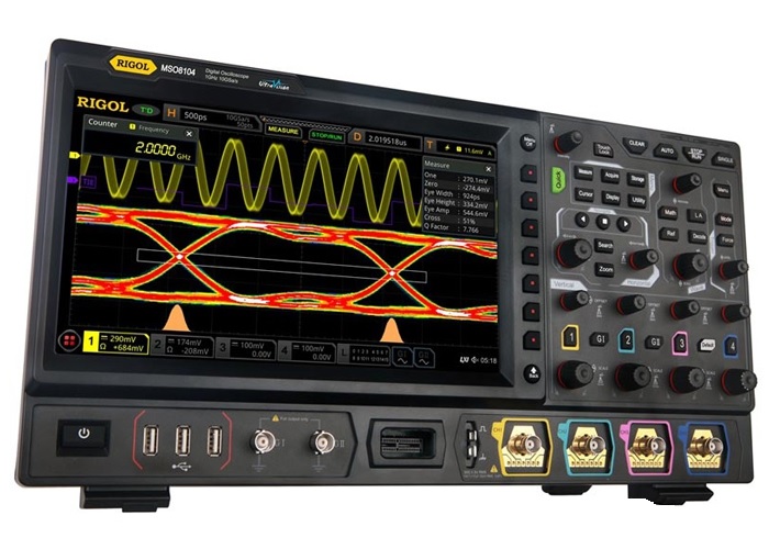 Цифровой осциллограф смешанных сигналов MSO8064 оперирует новейшей разработкой компании Rigol - процессором "Phoenix", что обеспечивает частоту дискретизации в реальном времени до 10 Гвыб/с, а технология UltraVision 2 позволяет увеличить размер глубины записи до 500 М точек, скорость захвата осциллограмм до 600000 осц/с, а максимальный размер кадров при анализе осциллограмм - до 450000. В осциллографе MSO8064 имеется большой сенсорный дисплей, что наряду с традиционными органами управления на передней панели прибора делает пользовательский интерфейс простым и удобным, а также предоставляет возможность использовать зональный запуск.